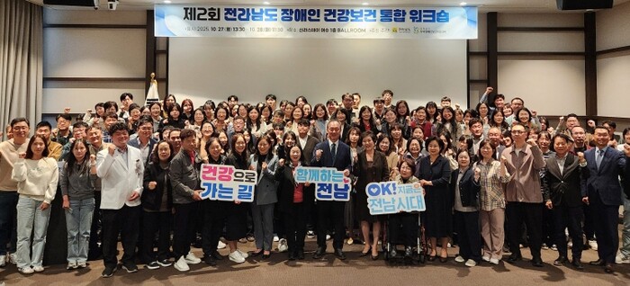 ‘건강으로 가는 길, 함께하는 전남’ 주제로 열린 이날 워크숍에는 장애인 건강지원 담당 공무원과 장애인 복지시설 종사자 등 150여 명이 참석했다.