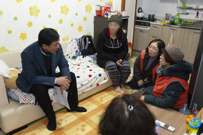| ▲ 고남석 연수구청장이 한부모 가정을 방문하고 있다. (사진=연수구 제공) |
