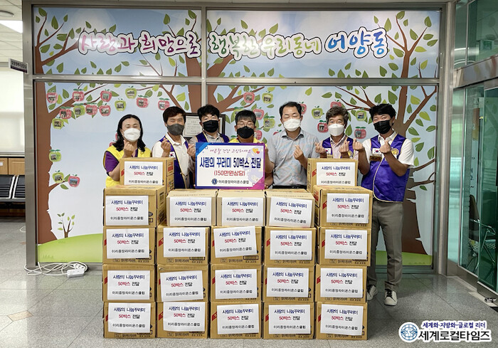 익산시에 따르면 이날 클럽은 여름철 관리를 위해 라면과 방역물품 등이 담긴 150만 원 상당의 꾸러미 50박스를 어양동 행정복지센터에 전달했다.