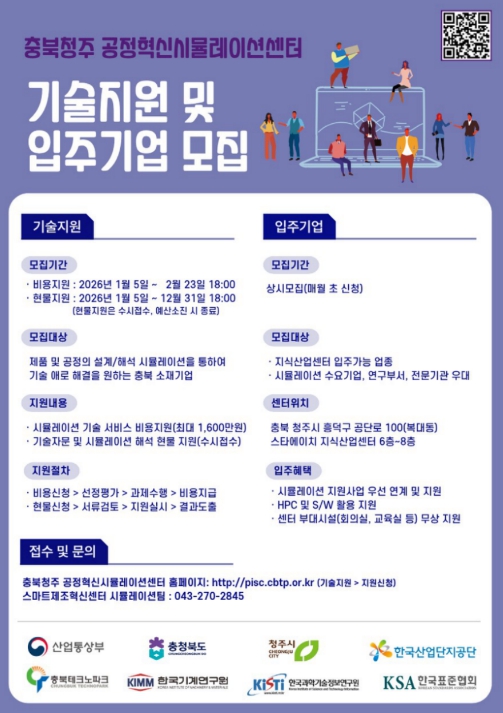 사업, 센터 입주 신청 및 자세한 내용은 충북청주 공정혁신시뮬레이션센터 홈페이지에서 확인할 수 있으며, 문의는 충북TP 스마트제조혁신센터 시뮬레이션팀으로 하면 된다.
