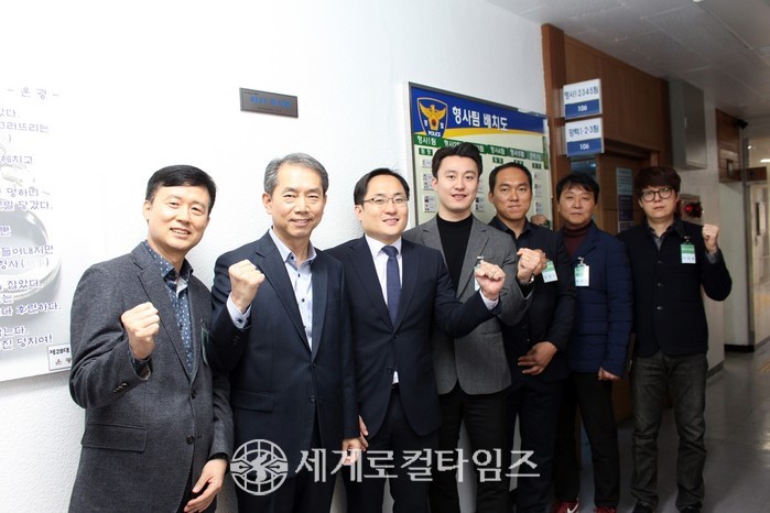 | ▲3분기 ‘베스트 형사팀’에 선정된 대구 수성경찰서 형사과 강력2팀이 화이팅을 외치고 있다. (사진=류종민 기자) |
