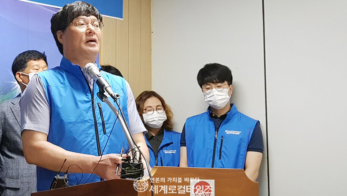 | ▲최지석 김제시공무원노동조합 위원장이 지난 7월 김제시의회 파문과 관련해 의견을 밝히고 있다. |