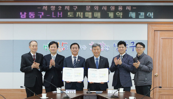이날 계약식에는 이강호 남동구청장과 한국토지주택공사 인천지역본부장이 참석했다. 이들 두 기관 대표는 매매대금 납부 방법 및 소유권 이전 등에 관한 사항에 대해 서로 계약서에 서명하고 계약을 마무리했다.