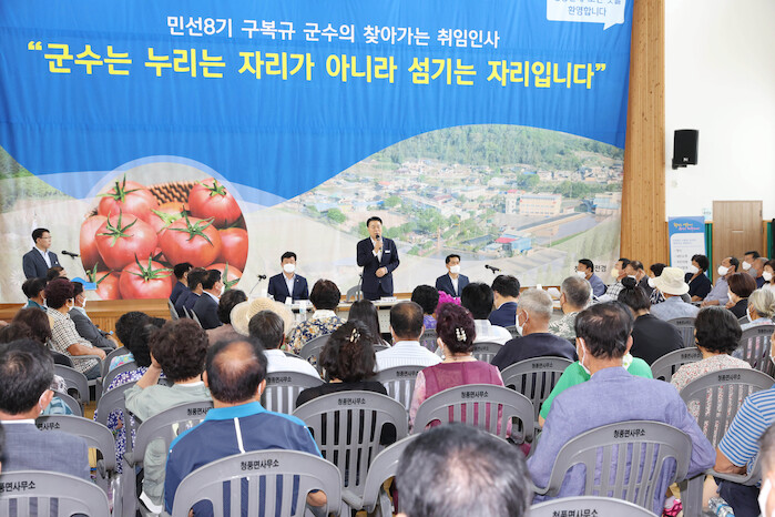 구 군수는 찾아가는 취임인사를 통해 민선 8기 군정비전과 관련된 각 면 지역의 현안에 대한 자신의 구상을 밝히고 면민의 의견을 경청했다.