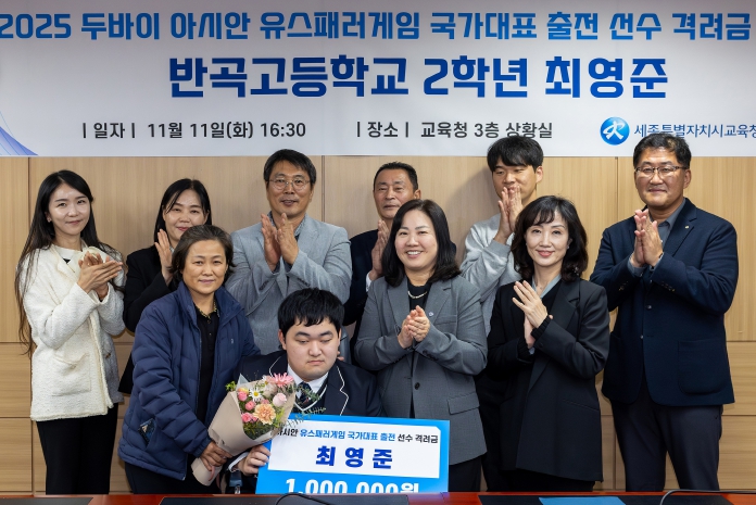 구연희 권한대행은 11일 교육청 상황실에서 이천 선수촌 입소 전 최영준 학생에게 지원금을 전달하며 출전을 응원하며, “최영준 학생이 국내 대회에서 보여준 성취와 노력은 세종시 학생 모두에게 큰 귀감이 되며, 국가대표로 출전하는 두바이 대회에서 그동안 흘린 땀과 성실한 노력이 결실을 맺기를 기대한다.”라고 말했다.