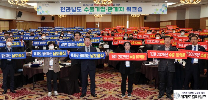 [세계로컬타임즈 김명진 기자] 전라남도와 (사)전남농수산식품온라인수출협회는 12일 나주 중흥골드스파에서 2025년 농수산식품 수출 10억 달러 달성을 위한 수출기업.관계자 워크숍을 개최했다.