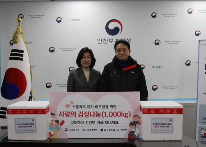 KT서부광역본부는 노사공동으로 2024년부터 인천보훈지청 국가유공자를 위해 어버이날 전병선물세트 후원, 초복 나눔 행사, 김장김치 후원, IT교육 등 국가유공자를 위해 많은 나눔 후원을 하고 있다.
