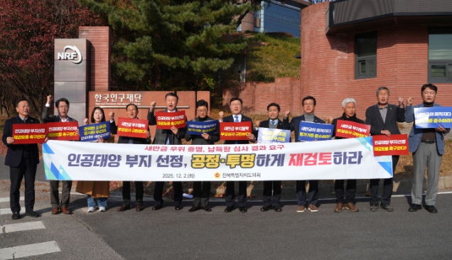 [세계로컬타임즈] 전북특별자치도의회(이하 ‘도의회’)가 2일 과학기술정보통신부의 인공태양 연구시설 부지 선정과 관련, 한국연구재단 대전청사를 항의 방문했다.