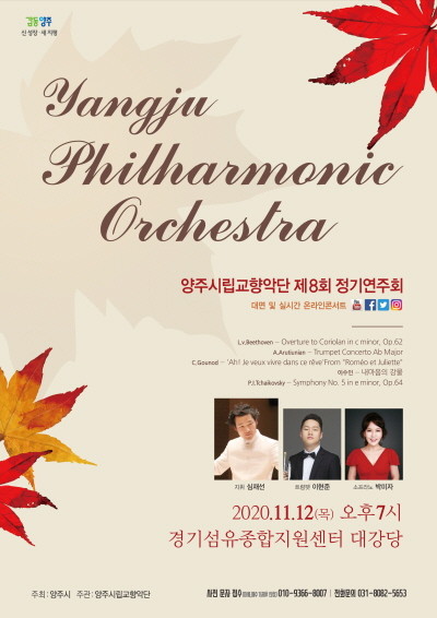 양주시 관계자는 “이번 연주회는 지난 2017년에 열린 제7회 정기연주회에 이어 3년 만에 개최한다”며 “깊어가는 가을밤의 정취를 느끼며 아름다운 클래식 음악을 감상하는 기회가 되길 바란다”고 말했다.