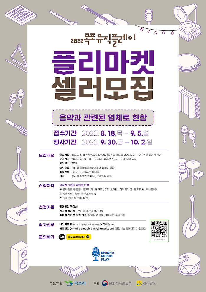 참가신청은 목포뮤직플레이 홈페이지(행사안내-공지사항)에서 신청서를 다운받아 오는 9월 5일까지 네이버폼 또는 이메일로 접수하면 된다.