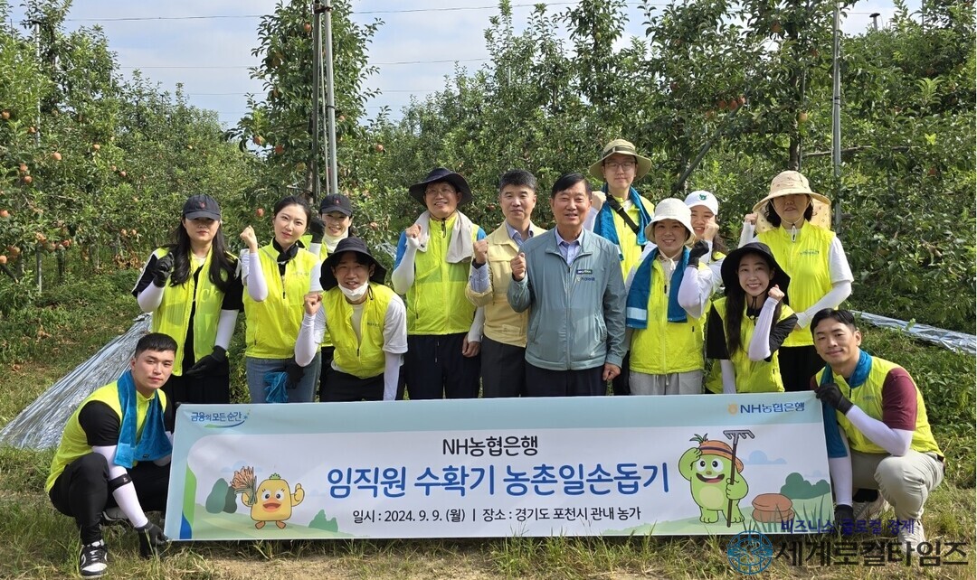 [세계로컬타임즈 = 김동현 기자] NH농협은행 ESG기획단은 지난 9일 경기 포천시 가산면 소재의 과수농가를 찾아 추석맞이 수확철 일손돕기를 실시했다고 11일 밝혔다.