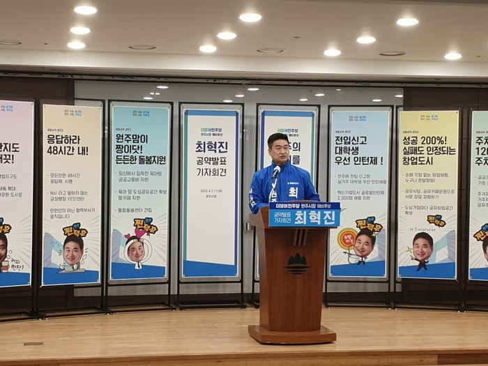 [세계로컬타임즈 글·사진 김재민 기자] 최혁진 원주시장 예비후보가 7일 공약 발표를 진행했다.