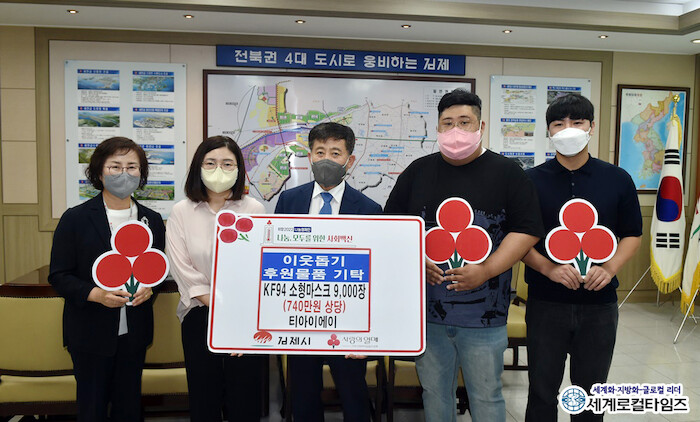 23일 김제시에 따르면 티아이에이는 지난 22일 김제시청을 찾아 저소득 가정 및 사회복지시설에 지원하기 위해 마스크 9000장을 기부했다.