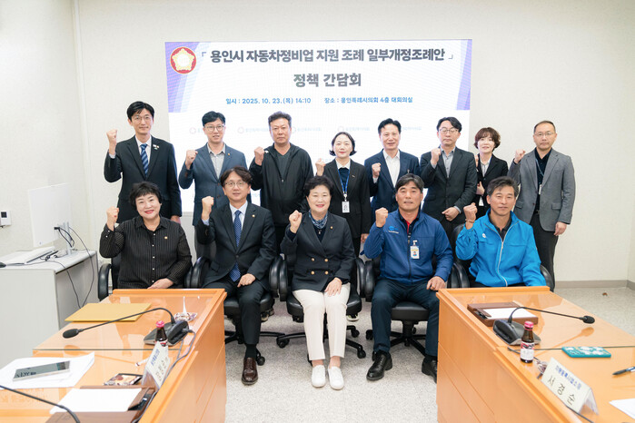 [세계로컬타임즈] 용인특례시의회 남홍숙 의원(중앙동·이동읍·남사읍/더불어민주당)은 23일 의회 대회의실에서 ‘용인시 자동차정비업 지원 조례’ 개정을 위한 정책간담회를 개최했다.