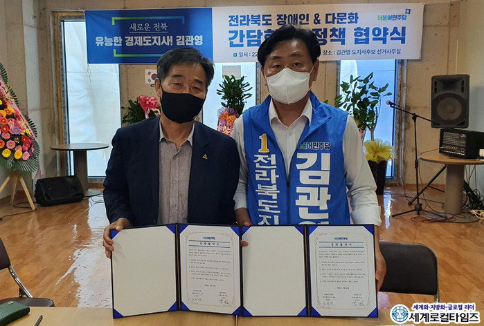 [세계로컬타임즈 조주연 기자] 김관영 전북도지사 후보가 “장애인과 다문화 가정의 교육과 복지를 위한 정책 협약식을 가졌다”고 밝혔다.