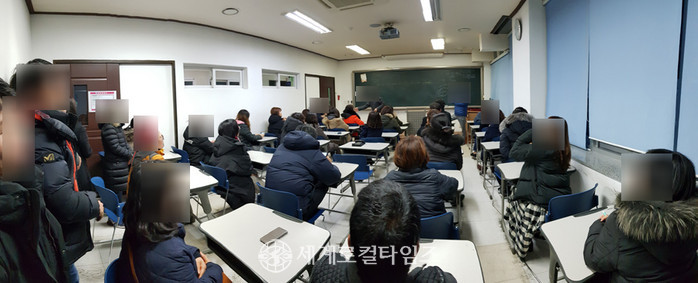 | ▲ 김제 지평선학당의 한 강의실에 27일 오후 일부 학부모들이 가득 들어선 가운데 우선협상 대상자인 K업체의 계약과 관련한 사항을 논의하고 있다. (사진=조주연 기자) |