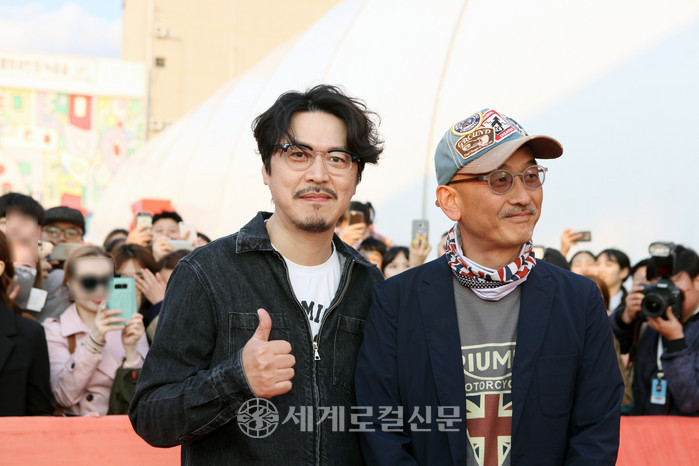 [세계로컬신문 조주연 기자] 이준익(왼쪽)·봉만대(오른쪽) 영화감독이 3일 오후 전주국제영화제 개막식에 참석해 레드 카펫 위에서 포즈를 취하고 있다.
