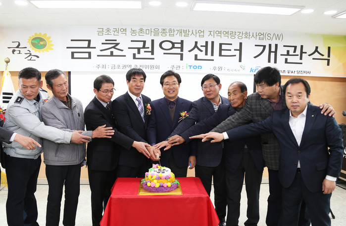| ▲ 충남 당진시 관계자들이 신평면 금초권역센터에서 금초권역단위종합개발사업을 마무리하고 준공식을 진행하고 있다. |