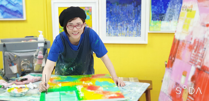 작가에게 또 다른 소재의 발견은 작업에 활기를 더 해 준다. 직관이나 상상으로 표현하는 비구상 그림은 밑그림 없이 시작한다. 머릿속 생각과 기억을 끄집어내는 작업은 어떤 그림이 나올지 궁금하다. 그래서 작가는 늘 설레고 떨린다.내가 표현한 결정체가 편안한 행복이었으면 좋겠다. 그림을 그리는 순간마다 느끼는 희열이 그것이기에. 주요색으로 사용한 파랑은 평화와 온유, 그리고 회복을 상징한다.