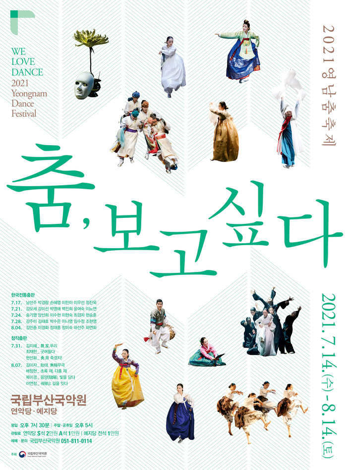 부산.영남 춤 활성화와 예술인 화합의 장 마련을 위한 춤꾼들의 열린 무대, 2021 영남춤축제 <춤, 보고싶다>가 한여름 불볕 더위도 뒤로 한 채 이달 31일과 8월17일, 국립부산국악원 연악당에서 공연된다.