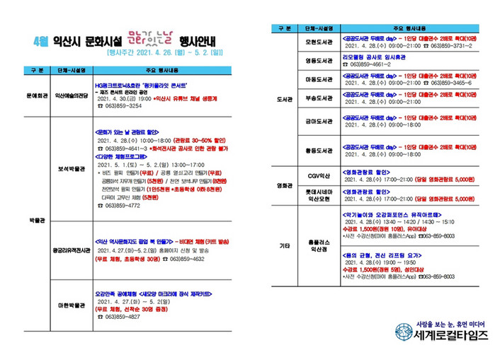 | ▲익산시 문화시설 4월 ‘문화가 있는날’ 행사 안내.(익산시 제공) |
