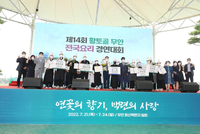 [세계로컬타임즈 박종현 기자] 무안군(군수 김산)은 무안연꽃축제 기간인 23일 무안군 일로읍 회산백련지 주무대에서 ‘무안의 맛을 잇다’라는 주제로 열린 제14회 황토골 무안 전국요리 경연대회가 관광객들의 뜨거운 관심 속에 성황리에 마쳤다고 밝혔다.