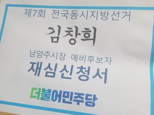 | ▲ 김창희 더불어민주당 경기도 남양주시장 예비후보의 경선 후보 재심 신청서. <사진제공=김창희 선거사무실> |