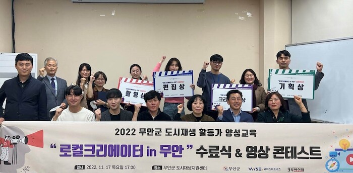 [세계로컬타임즈 박종현 기자] 전남 무안군(군수 김산)은 최근 무안군 도시재생지원센터에서 도시재생 활동가 로컬크리에이터 양성과정 수료식과 영상 콘테스트를 개최했다.