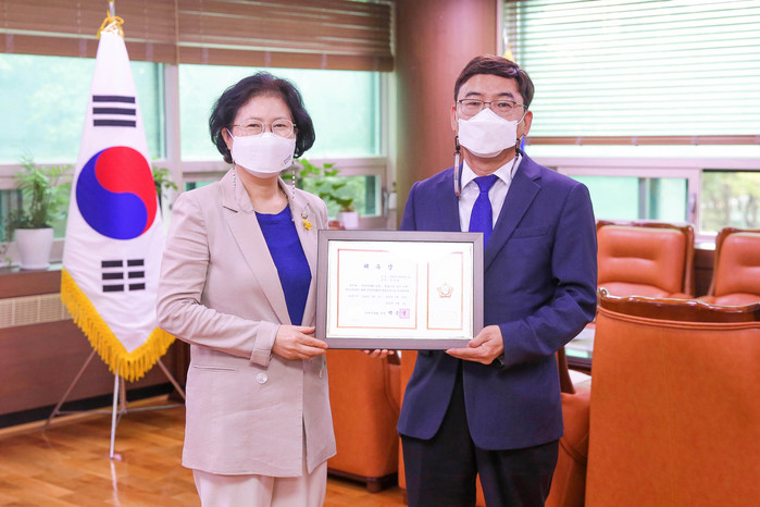 | ▲ 안산시의회가 1일 의장실에서 의회 법률고문 위촉식을 갖고 박재호 변호사를 법률고문으로 위촉했다. 사진 왼쪽이 박은경 의장, 오른쪽이 박재호 변호사다. (사진=안산시 시의회) |