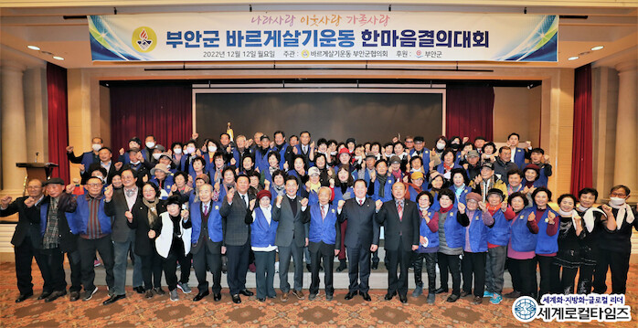 [세계로컬타임즈 조주연 기자] 바르게살기운동 전북 부안군협의회가 2022년 나라사랑·이웃사랑·가족사랑 한마음 결의대회를 개최했다.
