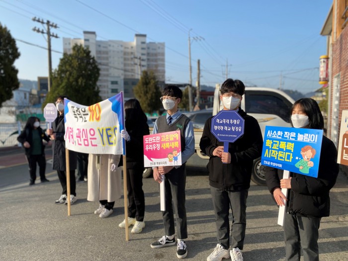 [세계로컬타임즈 박종현 기자] 진도교육지원청(교육장 이문포)은 2022학년도 신학기를 맞이해 지난 16일 ‘등굣길 학교폭력 예방 캠페인’을 위해 진도중학교 정문에서 진도경찰서, 학생자치회, 학부모회와 연합 캠페인을 실시했다.