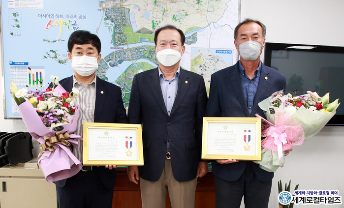 [세계로컬타임즈 조주연 기자] 전북 군산시의회 이한세(다 선거구)·박광일(마 선거구) 의원이 전북시·군의회의장협의회로부터 ‘지방의정봉사상’을 수상했다.