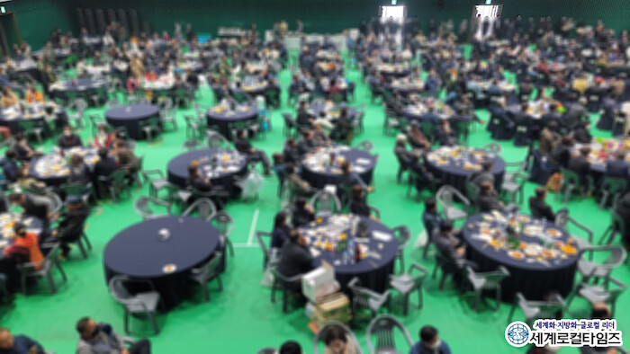 17일 오전, 김제실내체육관 안에서 김제지역 이·통장들이 모여 화합행사를 가졌는데 김제시 추산 720여 명이 모였다. 실내체육관 3면에는 뷔페식사가 마련됐다.