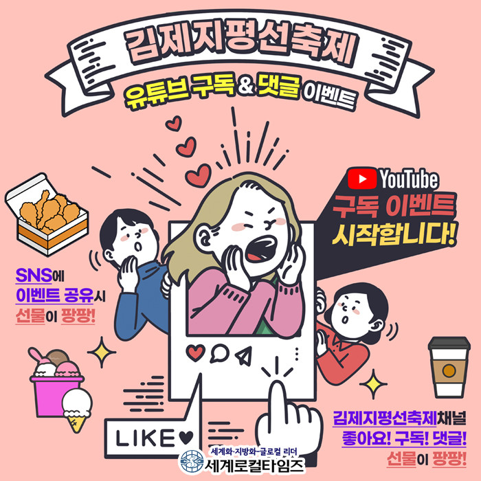 [세계로컬타임즈 조주연 기자] 김제지평선축제 유튜브 채널 구독·홍보영상 댓글 이벤트가 오는 10월까지 진행된다.