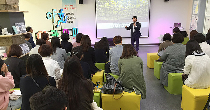 | ▲ 지난 18일 덕진 틔움공간에서 열린 ‘제3회 야호 아카데미’에서 참석자들이 강연을 듣고 있다.(사진=전주시 제공) |