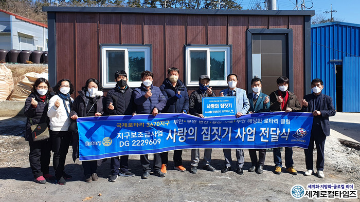 [세계로컬타임즈 조주연 기자] 국제로타리 3670지구 부안 지역 4대 클럽이 위도면 식도리 화재 피해 주민에게 이동식 주택을 전달했다.