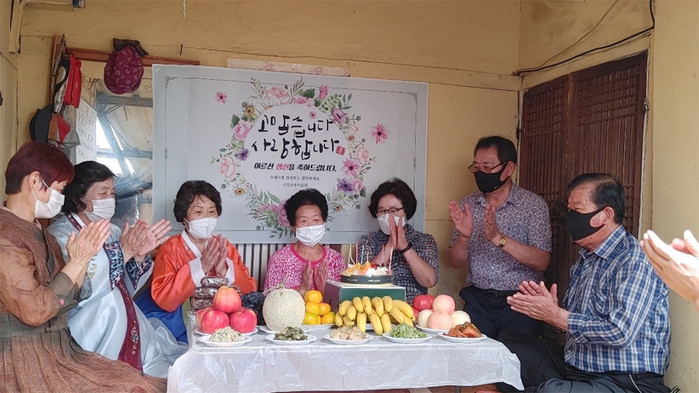 이날 새마을부녀회 및 새마을지도자협의회 회원 등 10여 명은 케이크와 미역국 떡 등 푸짐한 음식으로 생신상을 차려드리고 생신 축하 노래를 불러드리며 건강을 기원드렸다.