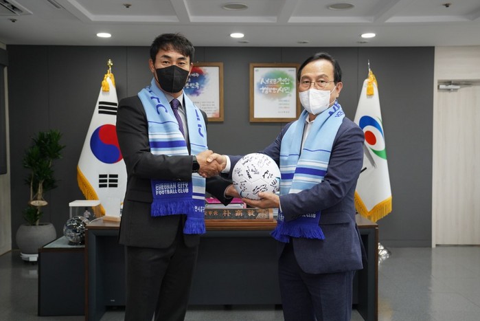 박상돈 천안시축구단 이사장은 “역사와 미래가 공존하는 역동적인 도시 천안의 축구단을 K3리그에 이어 2023년 K리그2 프로리그 진출까지 김태영감독과 함께 하게 돼 기쁘게 생각한다"면서 "앞으로 좋은 성적으로 코로나19로 어려운 시기에 70만 천안시민들에게 꿈과 희망을 전해주기를 기대한다”고 말했다.