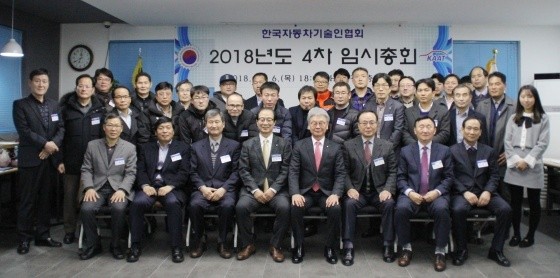 | ▲ 지난 6일 서울시 용산구 한국오토모티브컬리지(AMC) 본관에서 임시총회를 열고 제5기 임원진을 선출한 후 기념촬영을 하고 있다. (사진=한차협 제공) |