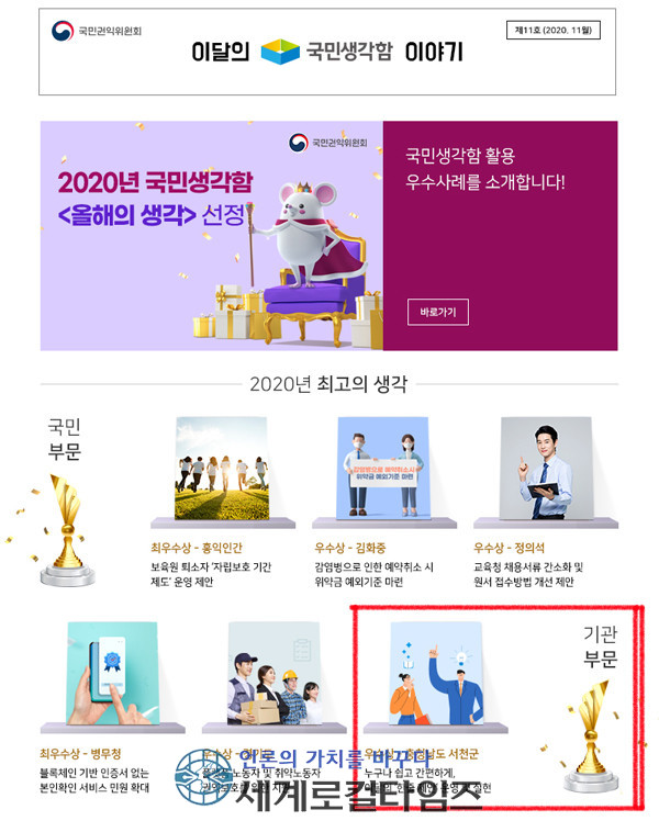 | ▲이달의 국민생각함 이야기(사진=국민권익위원회 홈페이지 갈무리) |
