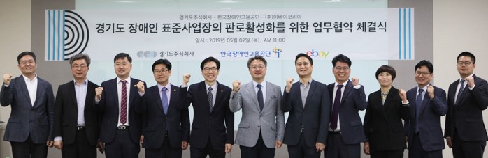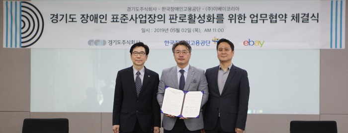 코리아경기도주식회사는 지난 2일 오전 판교 스타트업캠퍼스에서 한국장애인고용공단, ㈜이베이코리아와 함께 도내 장애인 표준사업장을 위한 ‘온라인·모바일 판로확대 및 홍보 지원 MOU’를 체결했다.