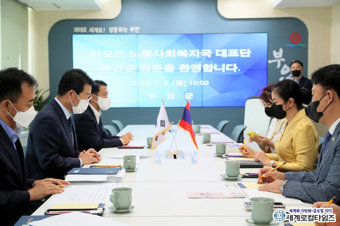 [세계로컬타임즈 조주연 기자] 권익현 전북 부안군수가 2일 라오스 ‘아누손 캄싱사바트’ 노동사회복지국장 일행과 농촌 계절근로자와 관련해 논의했다.