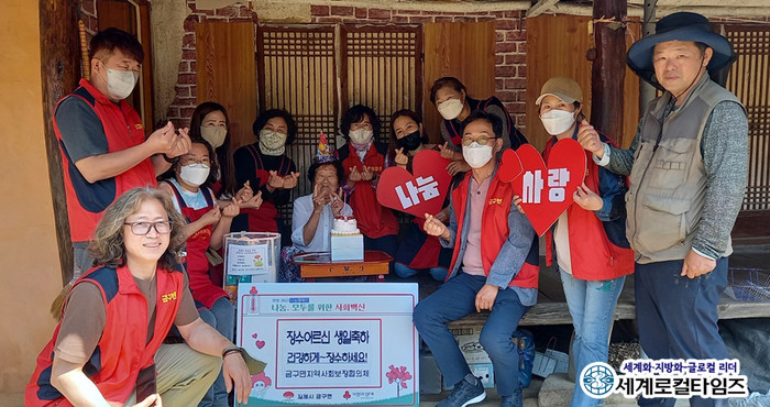 이 협의체는 90세 이상 어르신들의 생일에 직접 집으로 찾아가 케익과 선물 꾸러미를 전달하고 축하해 주며 안부까지 확인하고 있다.