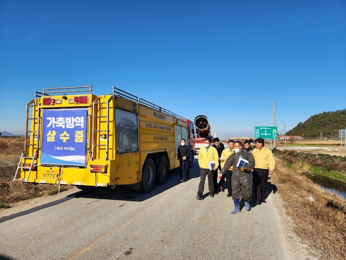 특히 광역방제기, 살수차, 드론 및 축협 공동방제단 방역차량과 해남군 소독차량 10여대를 동원, 가능한 모든 방역장비를 활용해 철새도래지 및 가금농장을 매일 집중 소독하고 있다.