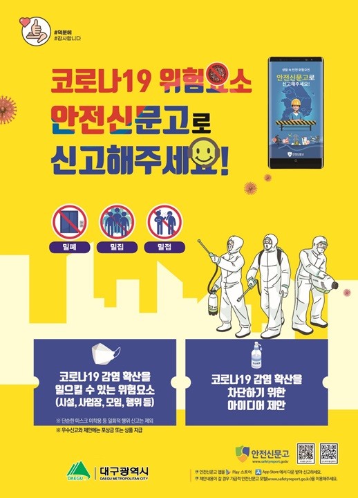 | ▲ 코로나19 위험요소 안전신문고 신고 요청 홍보물. (자료=대구시 제공) |