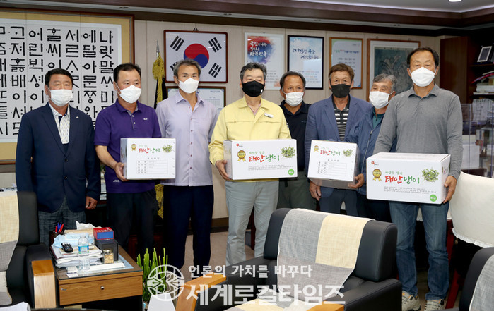 | ▲가세로 태안군수 집무실에서 열린 ‘태안 냉이 포장박스’ 전달식 장며. (사진=태안군 제공) |