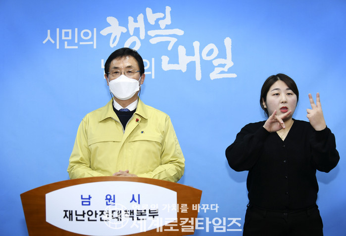 | ▲이환주 남원시장이 2020년 12월 7일 코로나19 확진자 브리핑을 갖고 있다.(사진=ⓒ남원시) |