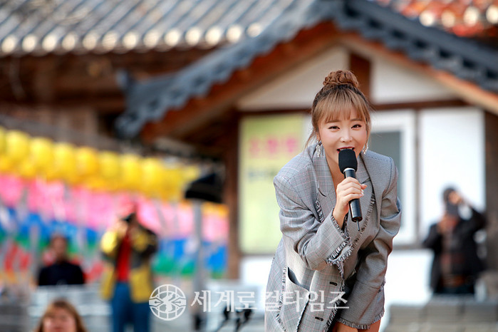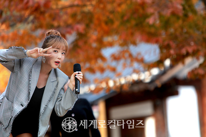 [세계로컬타임즈 조주연 기자] 가수 홍진영이 지난 3일 전북 부안군 내소사에서 열린 '2018 내소사 산사음악회' 무대에 올라 화려한 가을 단풍을 배경으로 잊지 못할 공연을 선사했다.