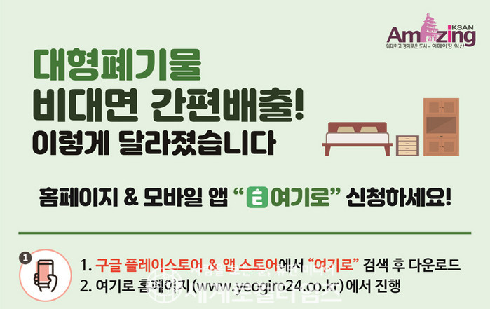 26일 익산시에 따르면 배출 신고는 ‘여기로’ 앱이나 홈페이지에 회원가입 후 배출 정보를 입력하고 대형폐기물 사진을 첨부하면 된다.
