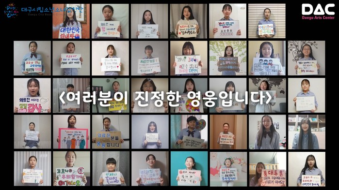| ▲ 대구시립소년소녀합창단이 제작한 ‘여러분이 진정한 영웅입니다’ 영상(사진=대구문예회관 제공) |